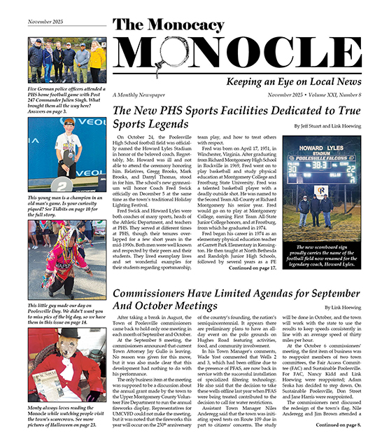 The Monocacy Monocle is the leading source of local news, features and local history for upper Montgomery County and Southern Frederick County.